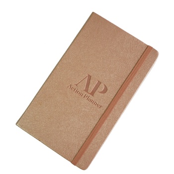 สมุดแพลนเนอร์สีโรสโกลด์หรูหราขนาด131*208มม. ขนาด A5กำหนดโลโก้เองหนัง PU ปกแข็งเครื่องเขียนที่เย็บผูกกับสาย
